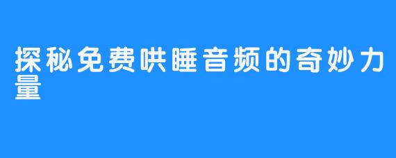 随着现代生活的快节奏和压力增大,越来越多的人发现自己难以入睡,而哄睡音频作为一种有效的放松工具,正在受到越来越多人的青睐。免费哄睡音频如今在互联网上随处可见,但各种类型的音频也使人眼花缭乱。那么,免费哄睡音频都有哪些呢?