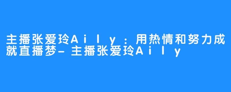 主播张爱玲,网名Aily,是一位充满热情和活力的直播主播。她以其亲和力和优秀的表现赢得了众多粉丝的喜爱和支持。Aily在直播中展现出了她的真诚和努力,不仅带来欢乐和娱乐,更是用自己的行动诠释了她对直播事业的热爱和追求。
