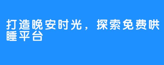 打造晚安时光,探索免费哄睡平台