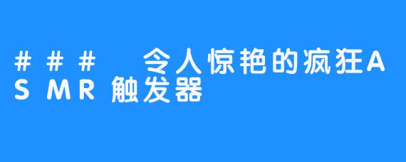 ASMR(自主感觉经络反应)是一种让人感到放松和愉悦的现象,越来越多的人开始探索各种触发器以获得不同的体验。在众多的ASMR触发器中,一些“疯狂”的触发器以其独特性和创意脱颖而出,带来新奇的感官享受。
